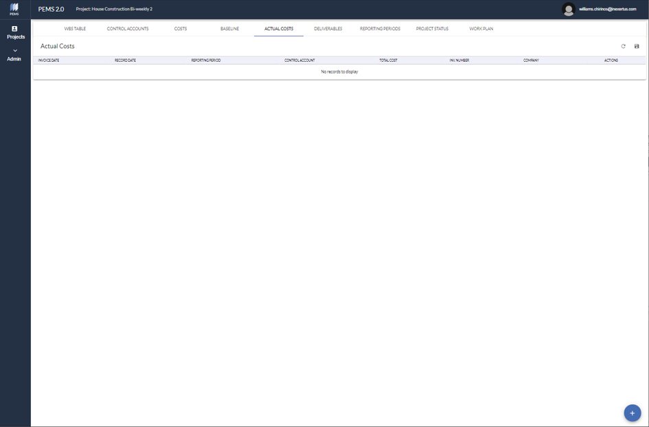 This screen allows to input Actual Costs of invoices into Control Accounts during construction.