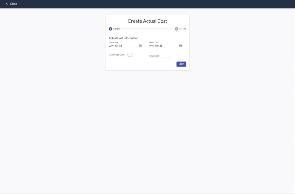 General: Input invoice date, record date into the system, total cost, and committed date for future costs.