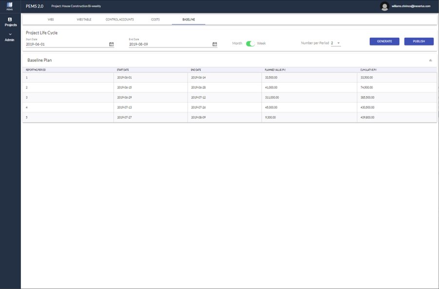 Click the blue generate button to display the planned value and cumulative planned value by reporting periods.
